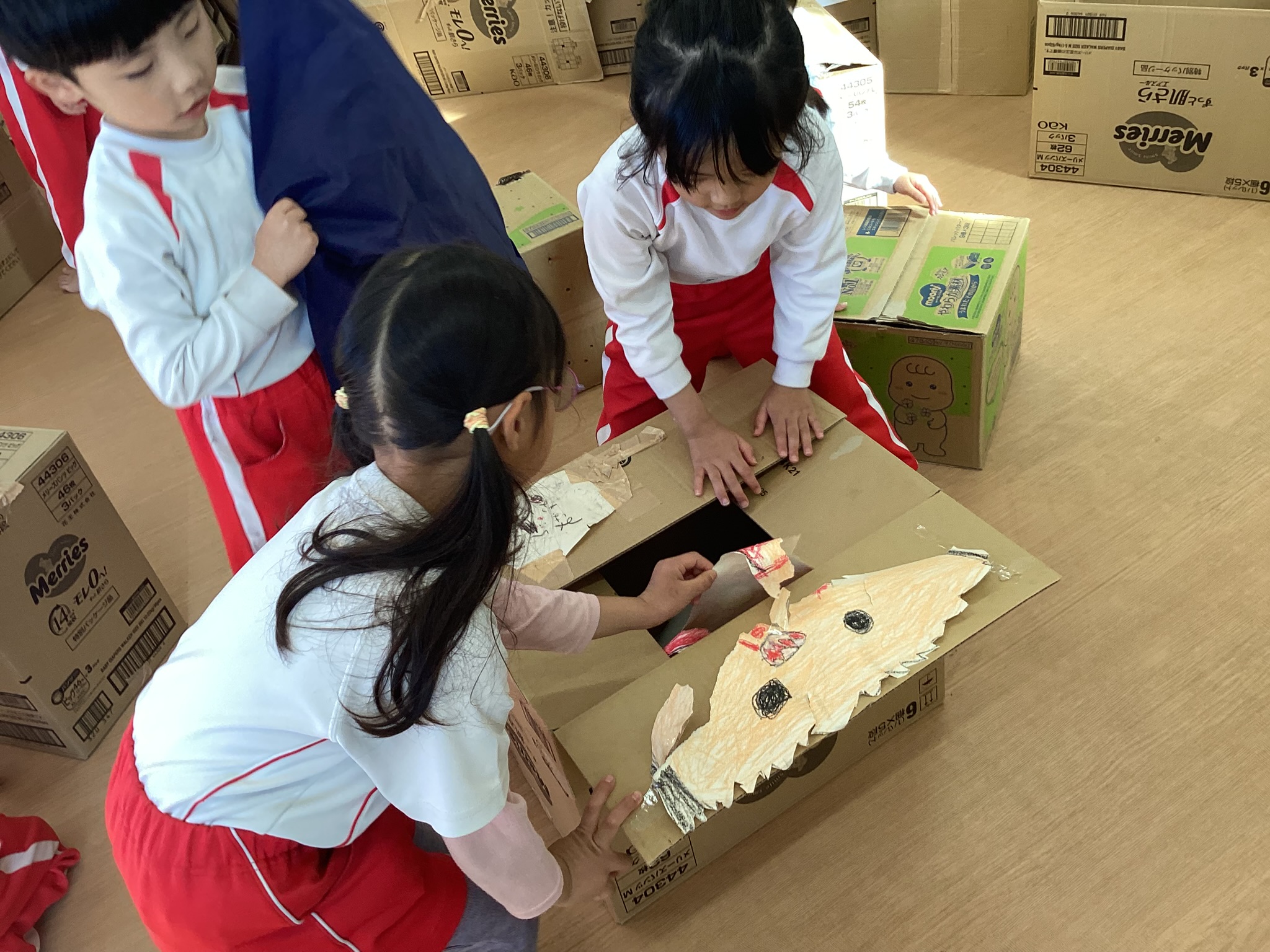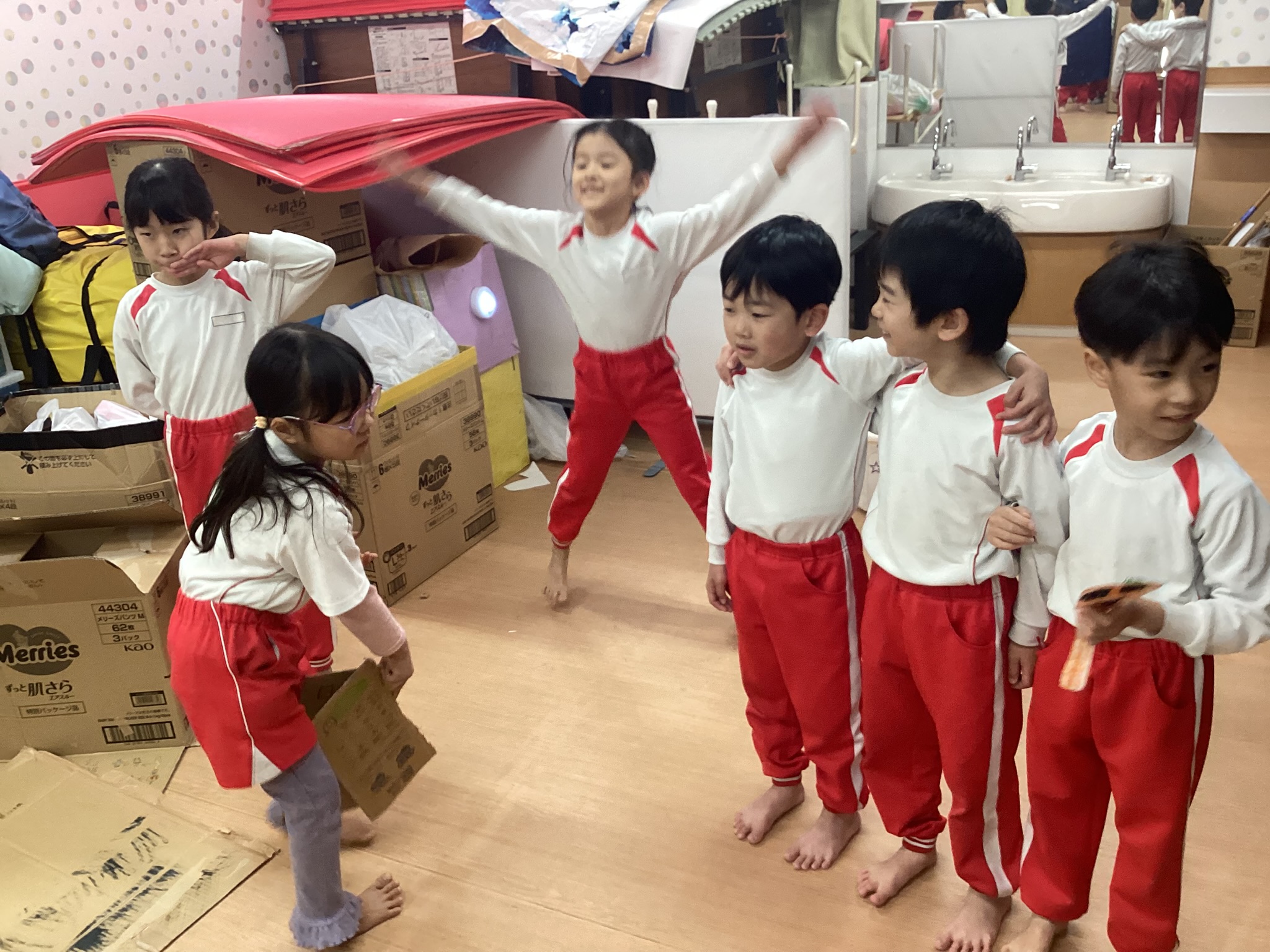 完成を喜ぶ5歳児たち。