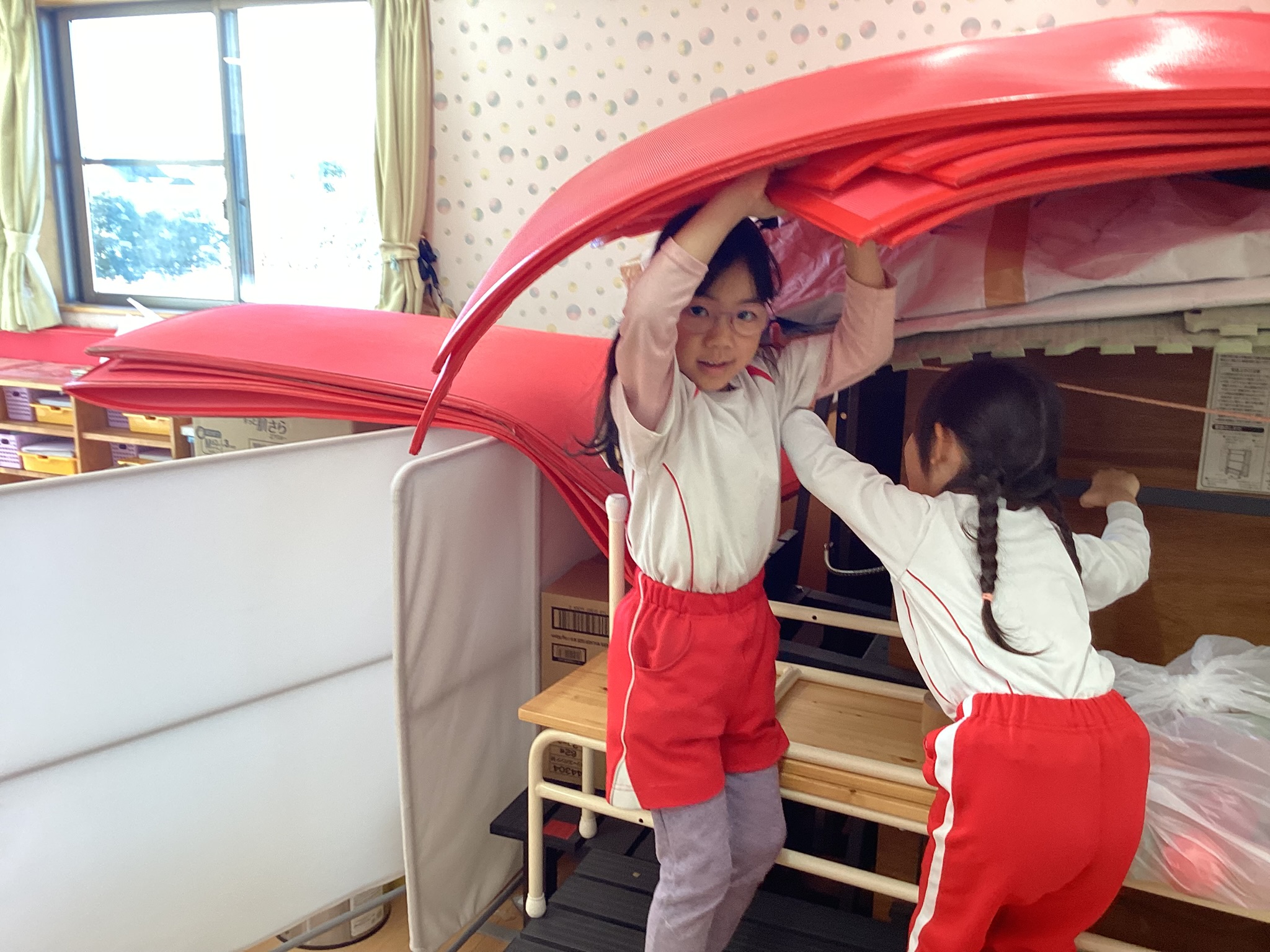 「これ使っていい?」と赤いマットを取り出す。