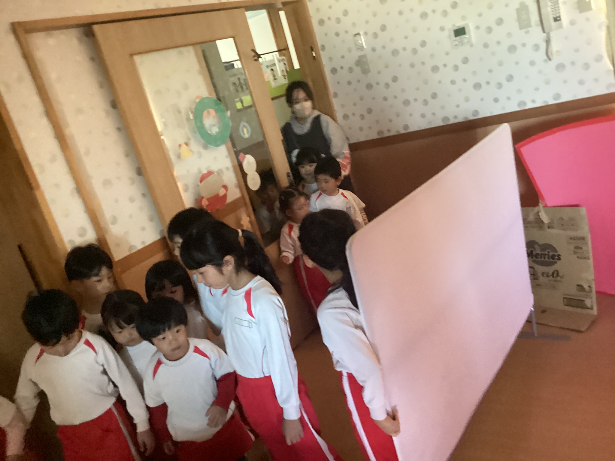 3歳児クラスと4歳児クラス、そして保育士たちを招待しています。