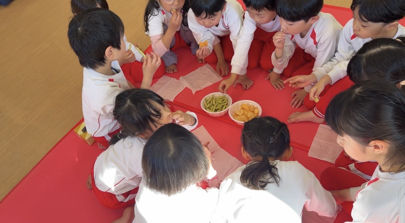 お客さんを招待したはずの5歳児が、参加者の3歳児と4歳児に感謝を述べる。ありがとうを言いたかった。きっと、言いたくなったんですね。